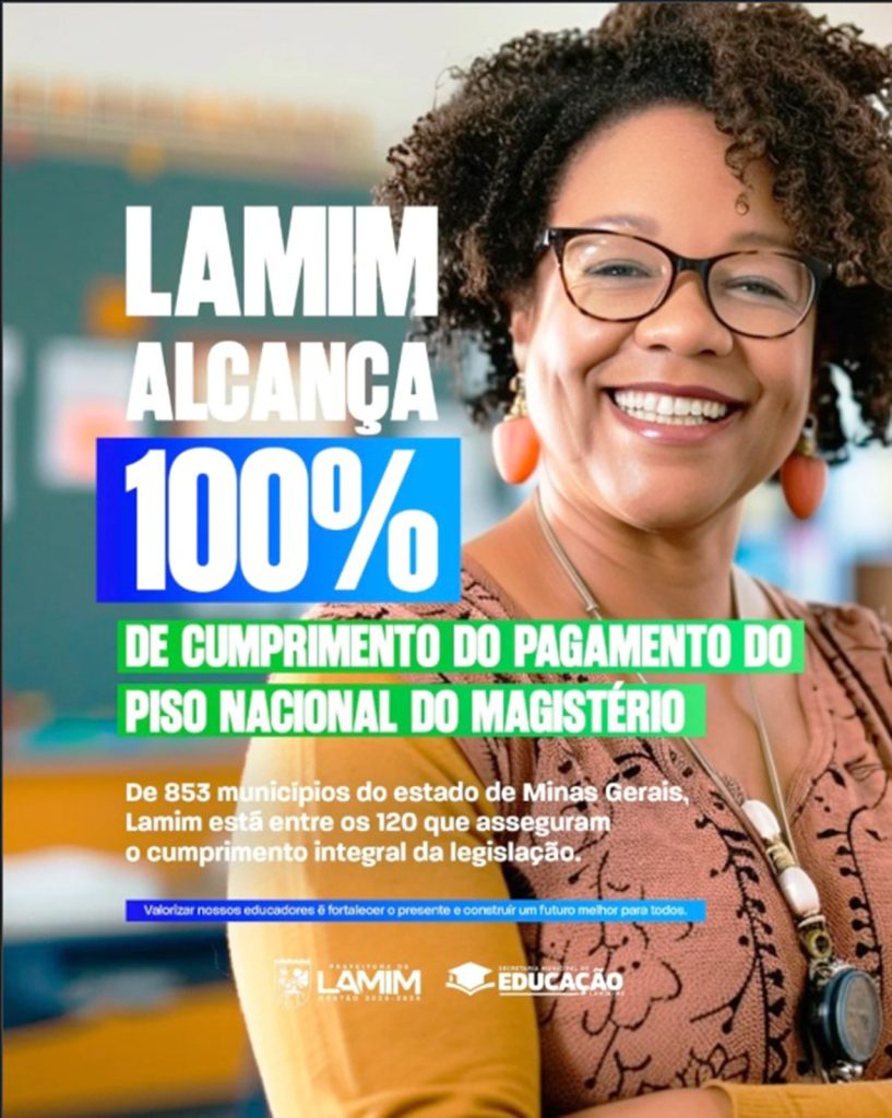 Lamim está entre os municípios mineiros que cumpriram integralmente o pagamento do Piso Nacional do Magistério, conforme determina a legislação federal que estabelece o valor mínimo para a remuneração dos profissionais da educação básica.