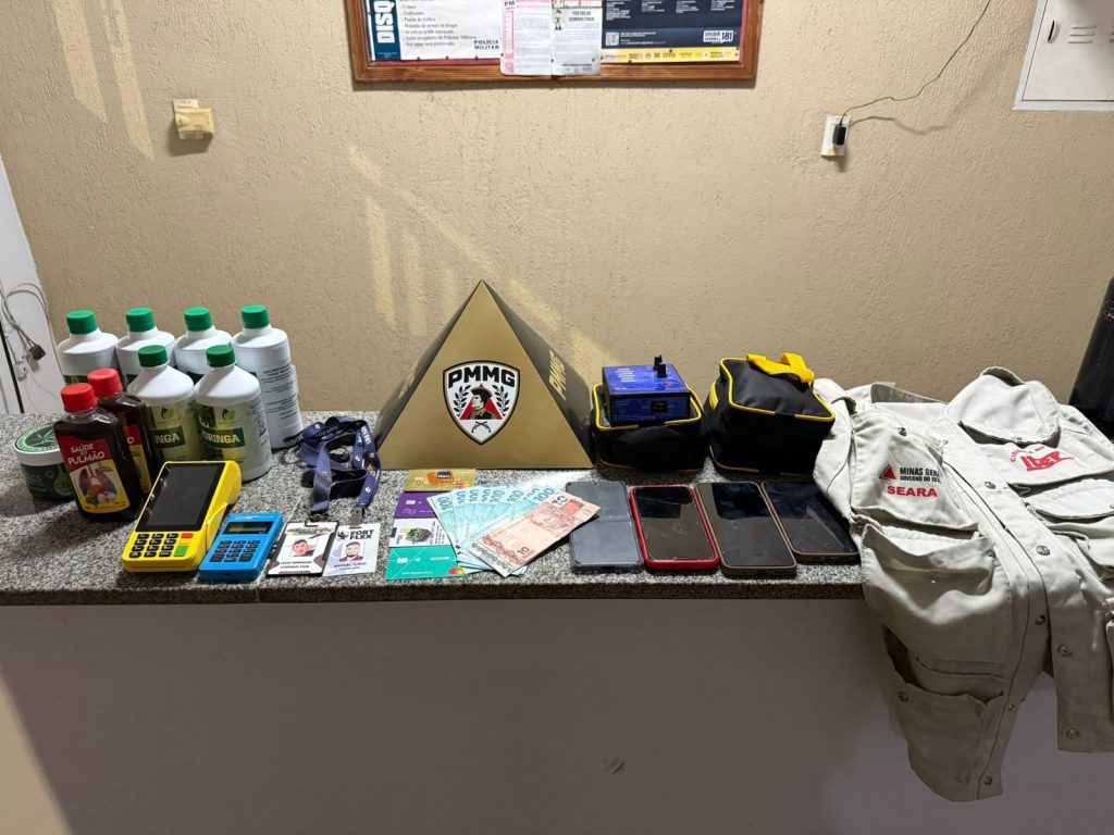 Quadrilha se passa por agentes públicos, invade casa e acaba presa com cartões, dinheiro e materiais suspeitos na MG-383