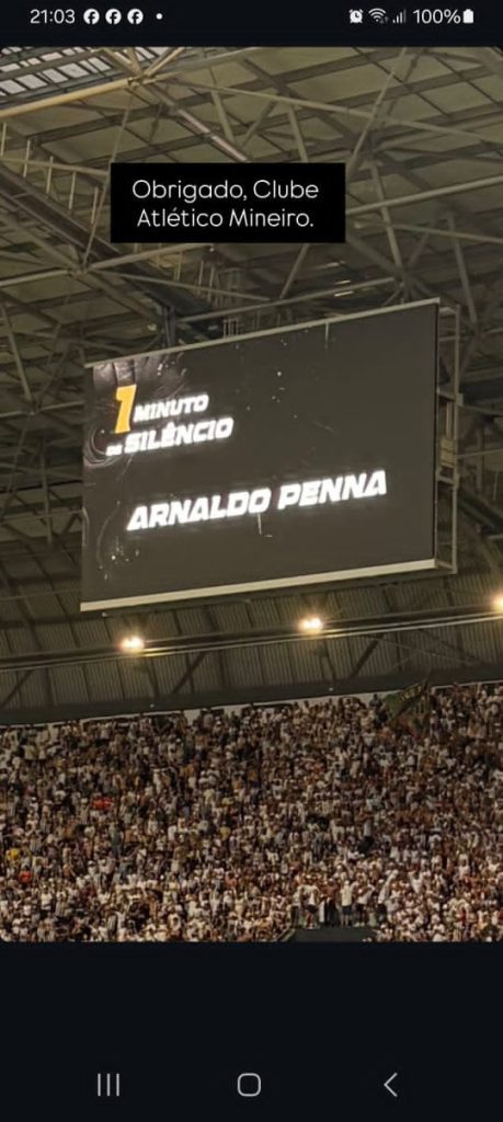 O estádio cheio. O barulho costumeiro. A expectativa antes da bola rolar. E então, o silêncio. No telão, simples assim. Arnaldo Penna. Sem títulos. Sem cargos. Sem explicações. Apenas o nome. Como se naquele instante tudo o que ele foi coubesse ali. E cabia. Antes da partida, o Clube Atlético Mineiro pediu um minuto de silêncio. E o estádio atendeu. Um silêncio respeitoso, profundo, carregado de significado. Para muitos, um nome no painel. Para outros, uma história inteira.