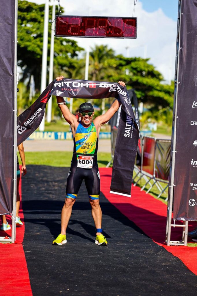 Neste domingo (12) às 06:04 foi dada a largada na praia de Placaford, em Salvador, para o Triton World Series. Prova Internacional que conta com etapas na China, Brasil e Portugal e somam pontos para o ranking mundial. O triatleta Daniel Gomes completou os 1km de natação, 40 km de bike e 10 km de corrida em pouco ma) de duas horas, sagrando-se campeão em sua categoria e conquistando o vice no geral. “Fiquei muito feliz com o resultado, consegui cumprir o planejamento feito
