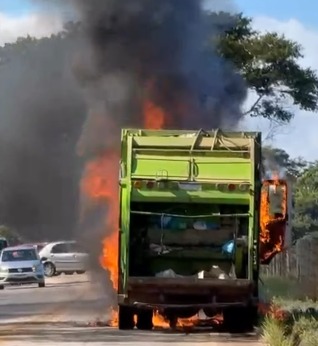 Um caminhão de coleta de lixo foi completamente destruído por um incêndio na tarde desta quarta-feira (15), na MG-129, nas proximidades de Rancho Novo, em Lafaiete. De acordo com as primeiras informações, o veículo pegou fogo em plena rodovia, provocando uma rcena de grande impacto e mobilizando motoristas que passavam pelo local. As chamas consumiram rapidamente o caminhão, que ficou totalmente destruído.