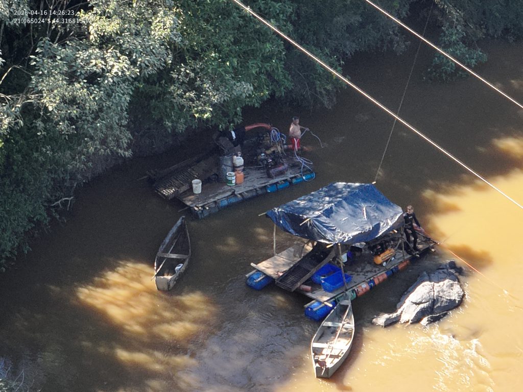 Devido à impossibilidade de remoção, duas balsas (dragas) utilizadas no crime foram inutilizadas no próprio local, conforme prevê a legislação ambiental. Além da prisão, foi aplicada autuação no valor de R$ 165.500,00. As investigações continuam para identificar e localizar os demais envolvidos na atividade criminosa.