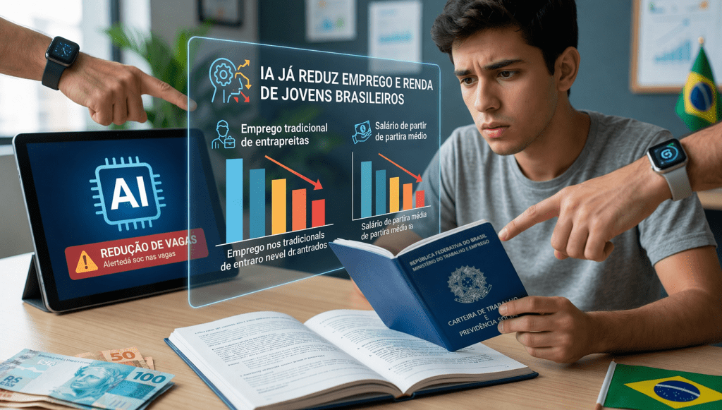 Estudo mostra que a IA impacta emprego e renda de jovens brasileiros, com queda salarial e mudanças no mercado de trabalho, refletindo uma transformação global impulsionada pela tecnologia