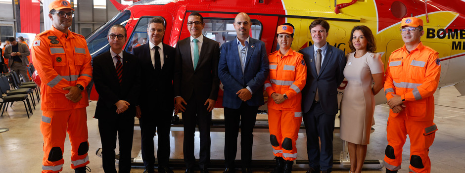 O governador Mateus Simões participou, nesta segunda-feira (27/4), em Belo Horizonte, da entrega de um novo helicóptero que passa a integrar a frota do Corpo de Bombeiros Militar de Minas Gerais (CBMMG).