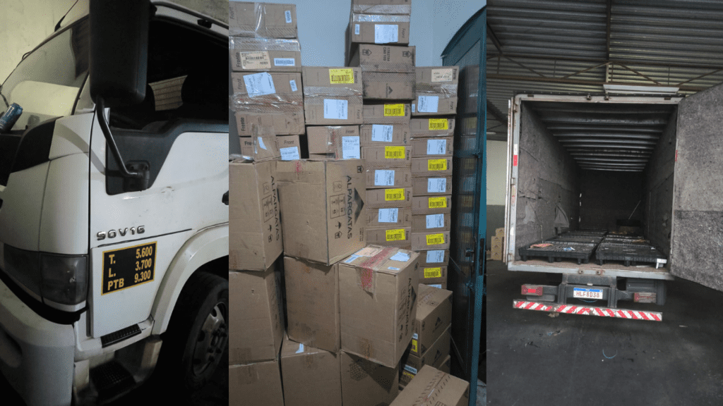 Durante a operação, foram apreendidas 464 caixas de chinelos da marca Havaianas, além de um caminhão com sinais de adulteração.
