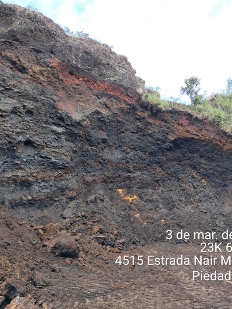 No dia 3 de março de 2026, realizamos registros fotográficos que mostram cortes recentes no terreno, abertura de frente de escavação e movimentação de material mineral na região de Piedade…