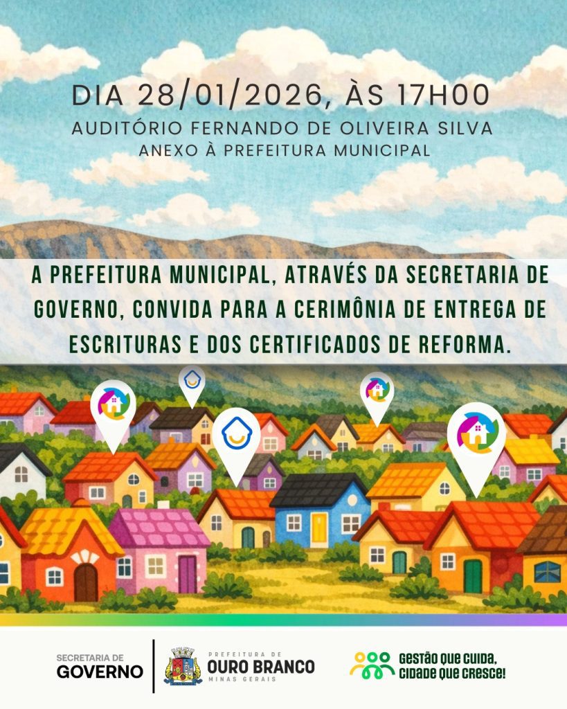 A Prefeitura de Ouro Branco, por meio da Secretaria Municipal de Governo, através do programa Ouro Branco Meu Lar, realiza hoje (28/01), a partir de 17 horas, no auditório Fernando…