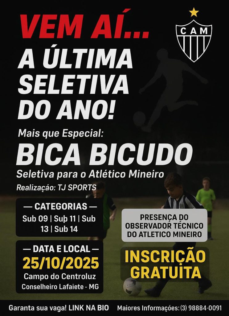 O sonho de vestir a camisa do Atlético Mineiro pode estar mais perto para jovens talentos de Conselheiro Lafaiete e região. No dia 25 de outubro de 2025 (sábado), será…