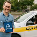 PERTO DE UMA TRAGÉDIA: Ônibus perde freio em descida, colide com carro e deixa duas pessoas feridas